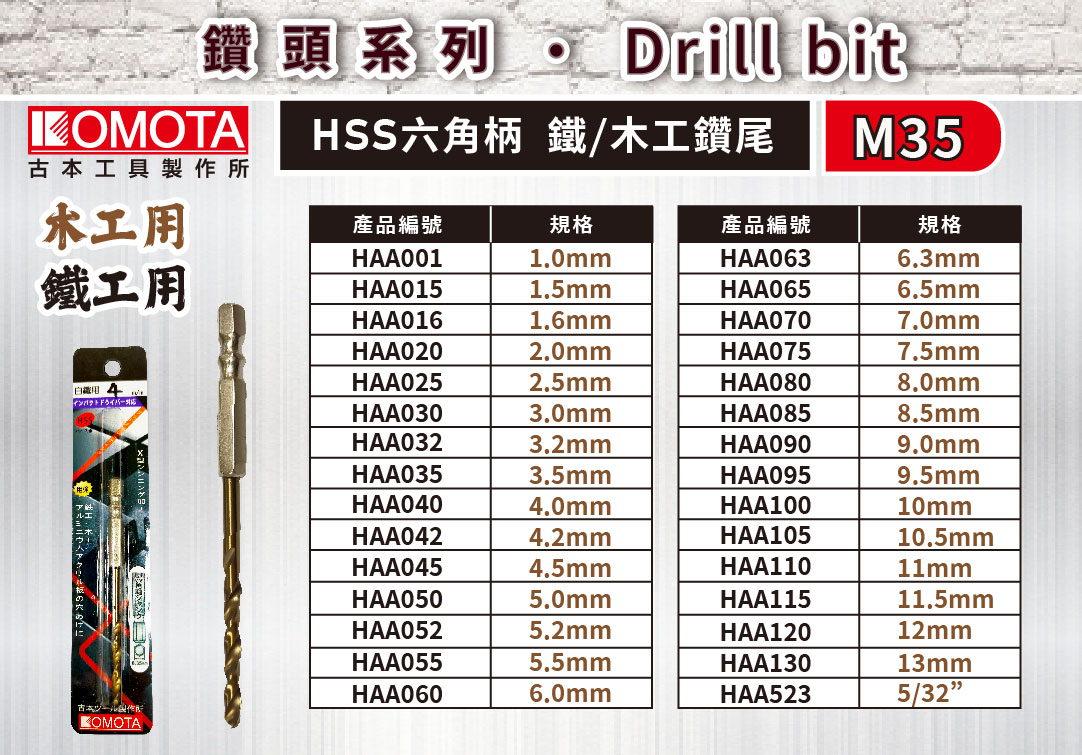 【KOMOTA】HSS 六角柄 鐵、木工鑽尾